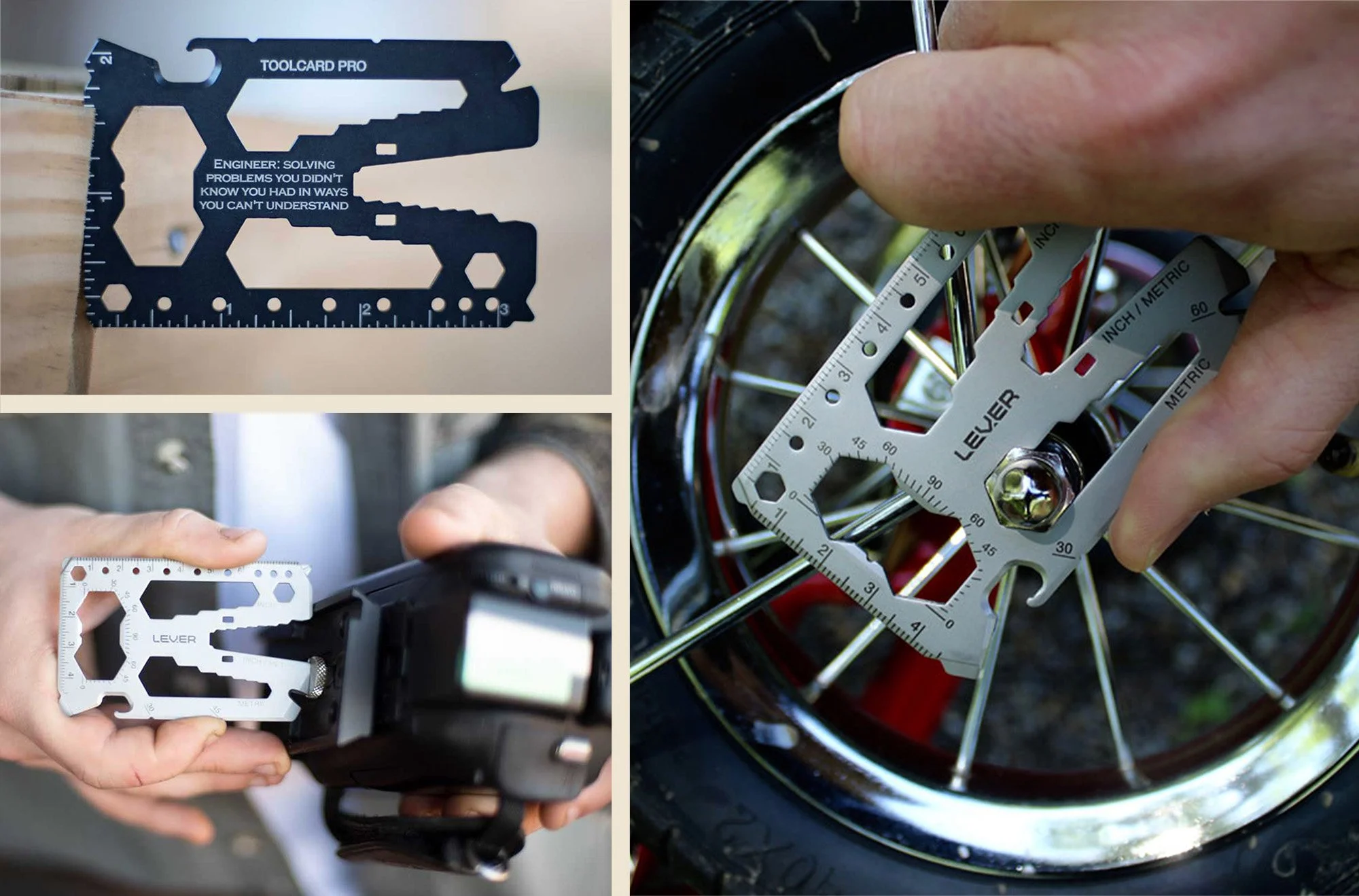 You'd probably picture a toolbox if you imagined a bottle opener, wrench, screwdriver, cord cutter, etc. Yet, this business card-sized tool does all that and more. With this device stored safely in a wallet, no one needs ever be caught out again. It's an awesome gift for dads and gadget lovers. Available in silver and black.